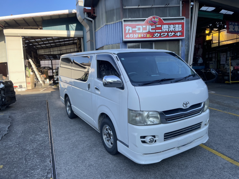 静岡県富士宮市|ハイエース(トヨタ)のキズ・へこみ直し事例(フロントバンパーのキズと変形修理、フォグカバーの交換)
