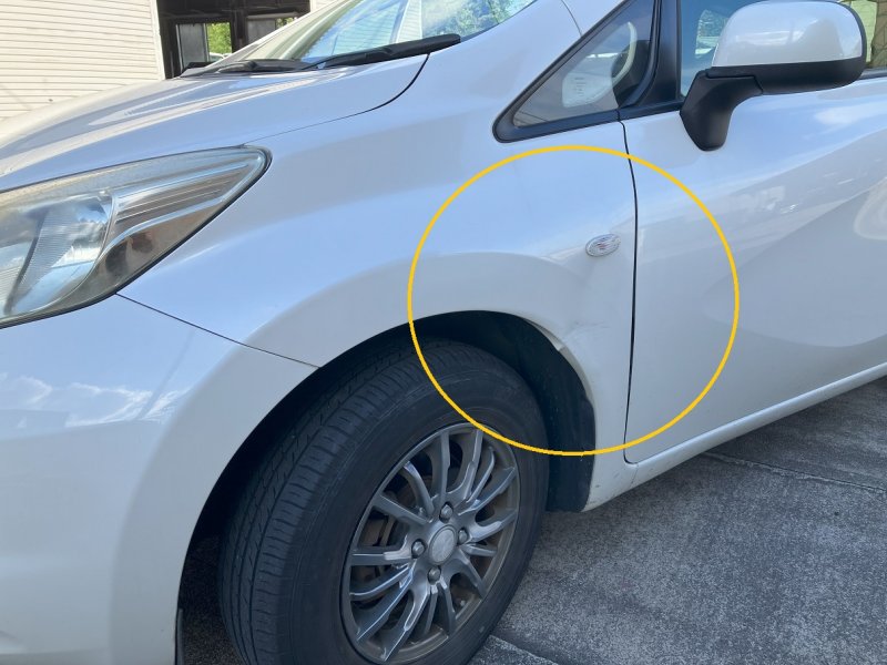 日産ノート 鈑金 塗装 修理 キズ へこみ フェンダー 新城市