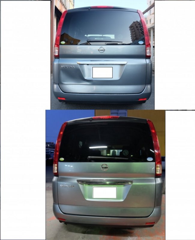 愛知県海部郡蟹江町|セレナ(日産)のキズ・へこみ直し事例(バックドア へこみ 板金 塗装)
