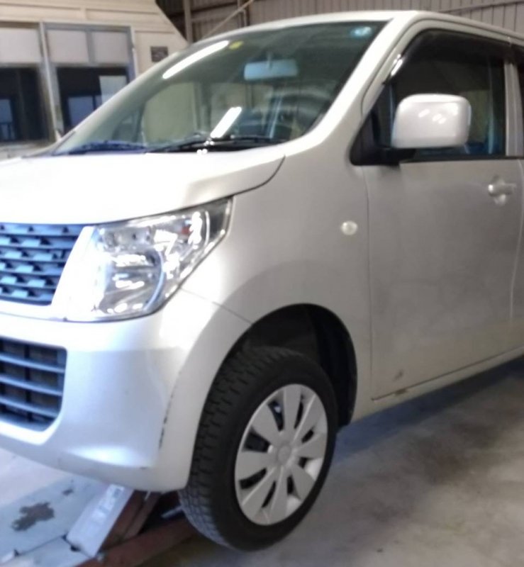 ひたちなか市 スズキ ワゴンR フロントバンパー フロントドア サイドシルパネル 板金 鈑金 塗装 キズ直し へこみ直し 修理 交換 取替