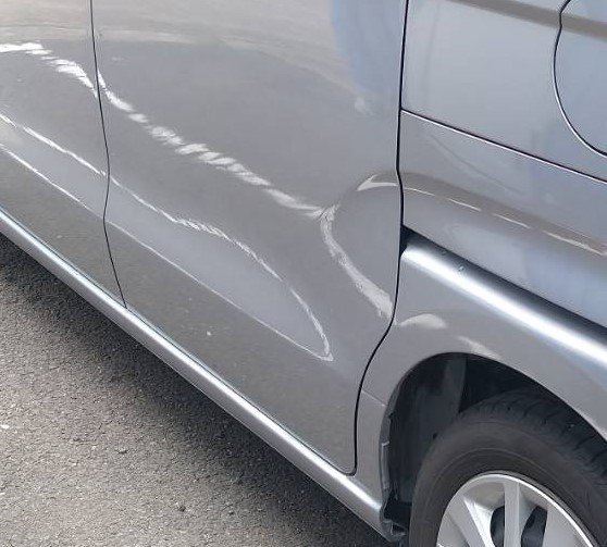 修理内容: 左スライドドアとクォーターパネルの板金修理と塗装作業。