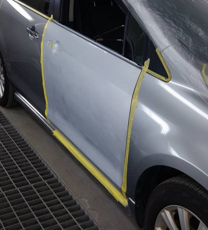 取り付けた中古ドアは、まずしっかりと固定されているか確認し、隙間やズレがないかを入念にチェックします。その後、ドアの色を車両に合わせるために塗装を行います。塗装作業では、事前にプライマーを塗布し、塗装の定着を良くする準備をします。そして、ドアに車両の純正色を調合した塗料を均一にスプレー塗装します。塗装後は、色が鮮やかに見えるようにクリアコートを施し、艶を出します。