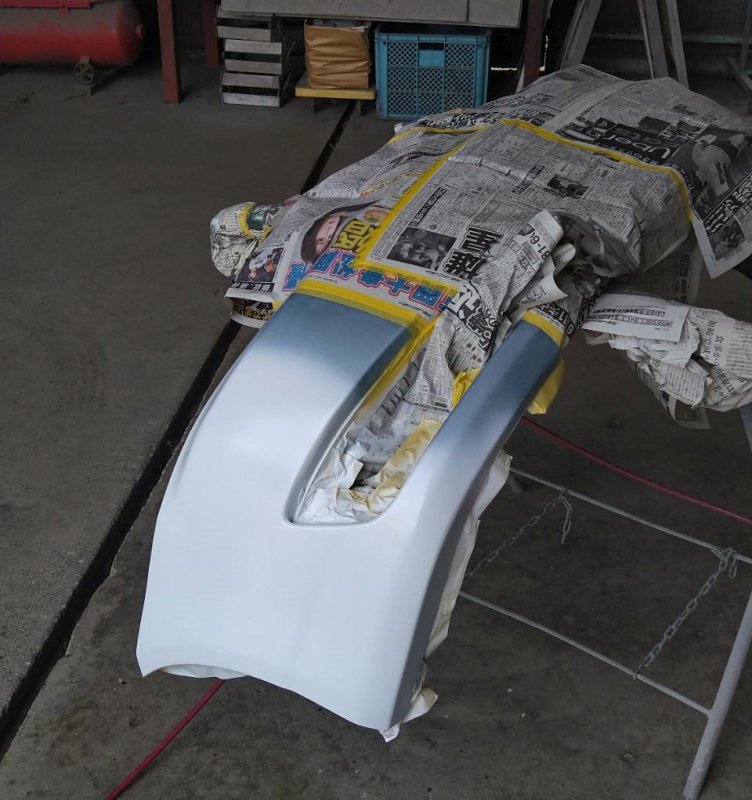 鈑金作業後、表面を塗装する準備をしました。塗装は車両の元の色に合わせて、専用のスプレーガンを使い、均等に塗り重ねていきました。塗装後には乾燥させ、その後、光沢を出すためにさらに磨きました。
