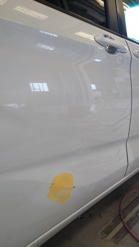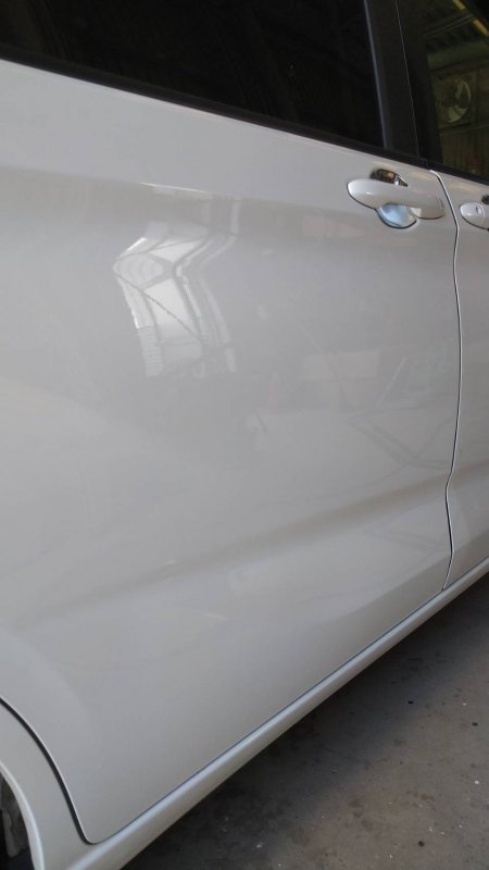 今回ご依頼いただいたフリードは、右側のスライドドアに擦り傷とへこみができていました。スライドドアは開閉機構があるためデリケートですが、今回は交換ではなく鈑金塗装で修理いたしました。