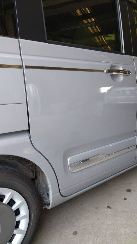茨城県ひたちなか市|ソリオ(スズキ)のキズ・へこみ直し事例(スライドドア、サイドステップ鈑金塗装)