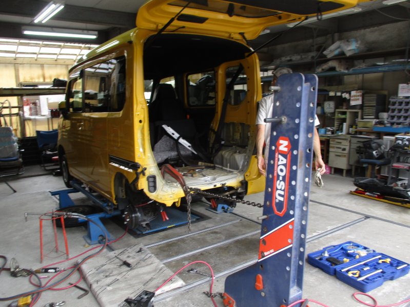 先ずは、修正機を使い車両の歪みを修正していきます。