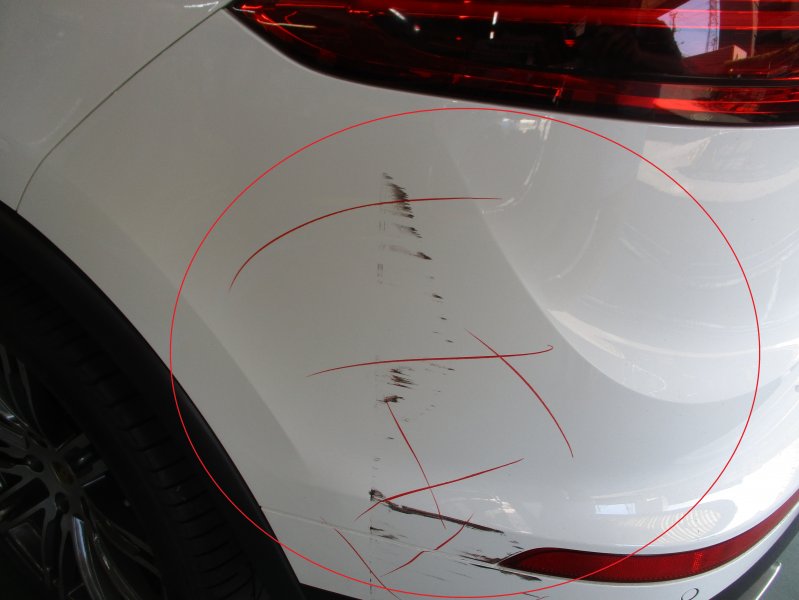 世田谷区 カイエン リアバンパー キズへこみ修理