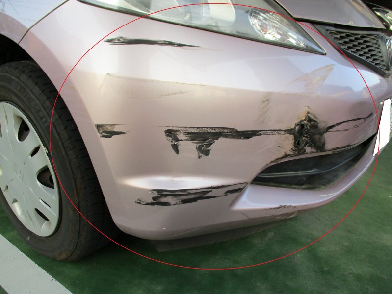 【三鷹市・武蔵野市・小金井市・府中市・調布市・杉並区・世田谷区】 フィット フロントバンパー キズへこみ修理