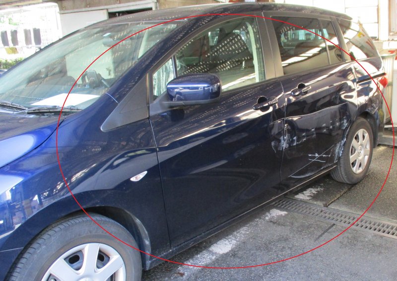 【三鷹市・武蔵野市・小金井市・府中市・調布市・杉並区・世田谷区】 プレマシー 左フェンダー/左前ドア/左後ろドア/左クォーター/リアバンパー キズへこみ修理