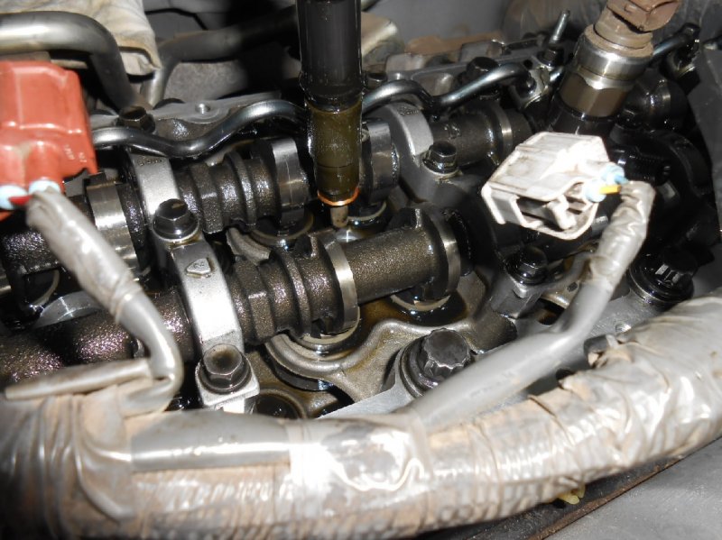 ロッカーカバーを外してインジェクター本体が見えてきました。