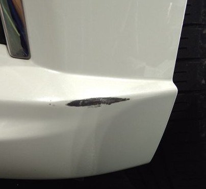 お客様がフロントバンパーを縁石ブロックで擦り、すり傷が発生。当店のホームページを見て、修理の依頼をいただきました。