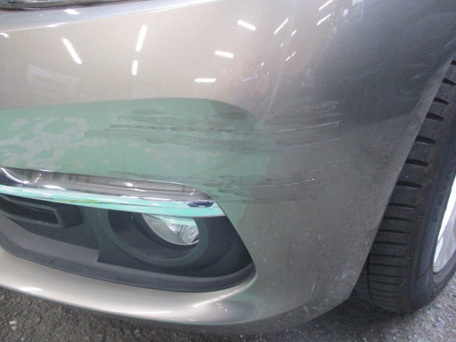 運転中に左前側のバンパーをブロック塀に擦ってしまい、当店にご相談いただきました。