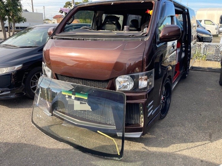愛知県一宮市|ハイエース(トヨタ)のパーツ交換・取付事例(フロントガラス交換)