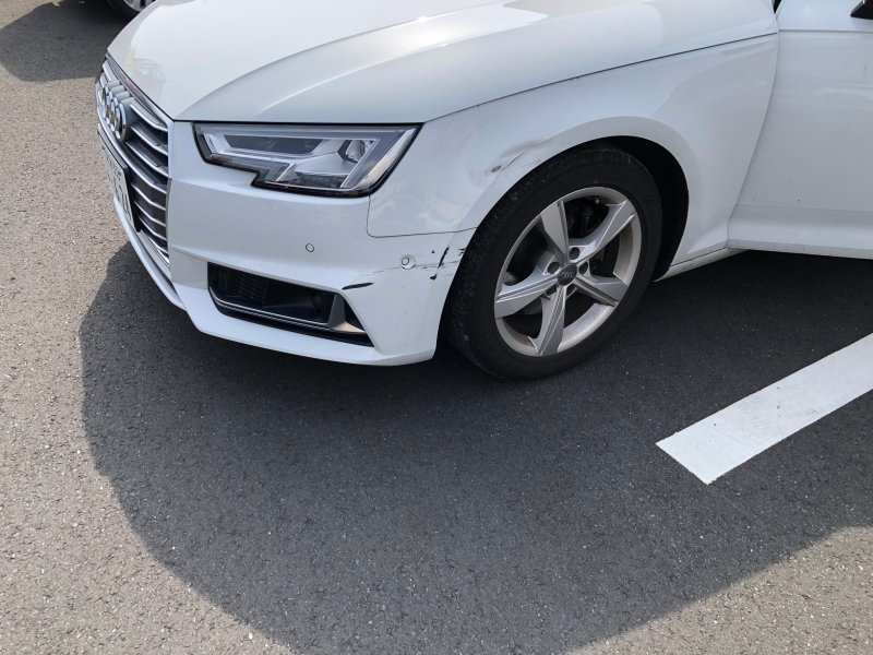 左フロントフェンダー・フロントバンパー鈑金塗装。