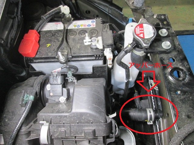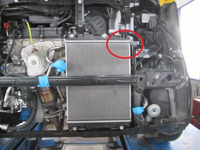 その後、ホースを取り外して、ラジエーターを固定しているステーを2ヶ所外すと、簡単に取れてきます。