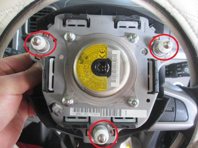 このセンサーはハンドルの下に付いているため、最初にホーンパットから外していきます。