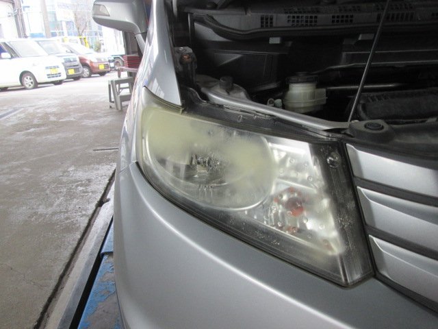 ヘットランプのレンズが劣化によりくもってしまい、暗くなっていて、テスターで確認すると基準値の半分でした。