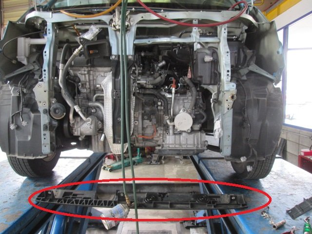 今回は他の部分修理も並行してる為フロントバンパーなどの部品が外れていてスムーズに作業できました。