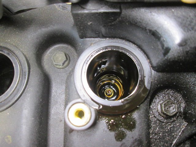 車検点検時、プラグッホールに大量のオイルが侵入しているのを見つけました。