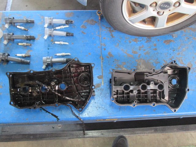 L375S タント エンジンオイル漏れ漏れ スパークプラグ取替 イグニッションコイル取替 ヘットカバーガスケット取替 福井市