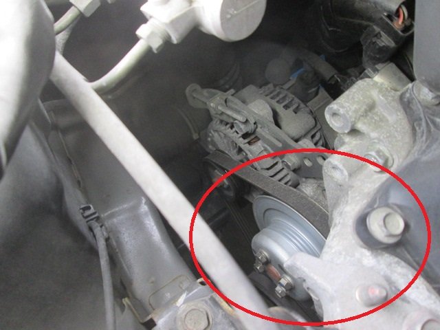 こちらの車両のウォーターポンプはエンジン左奥になります。