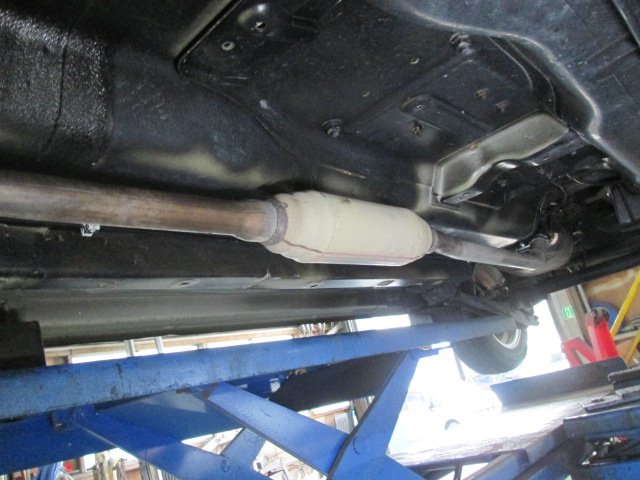 マフラーに穴が開き大きな音がしたためアルミテープで応急的に修理してありましたが、状態の良いリサイクルパーツが見つかったので取り替えました。