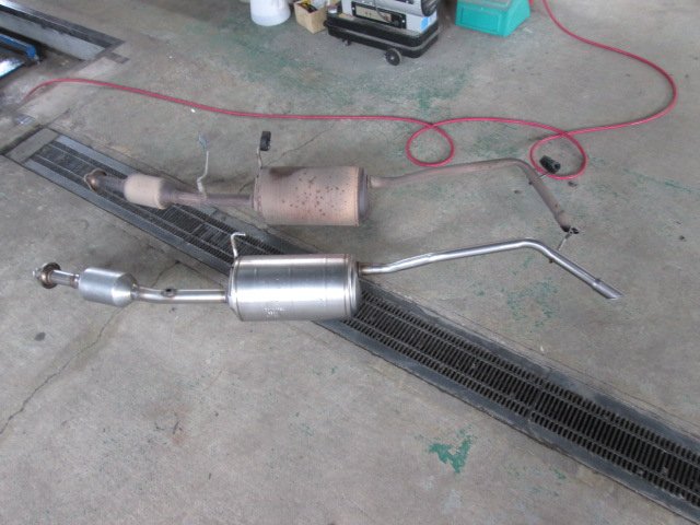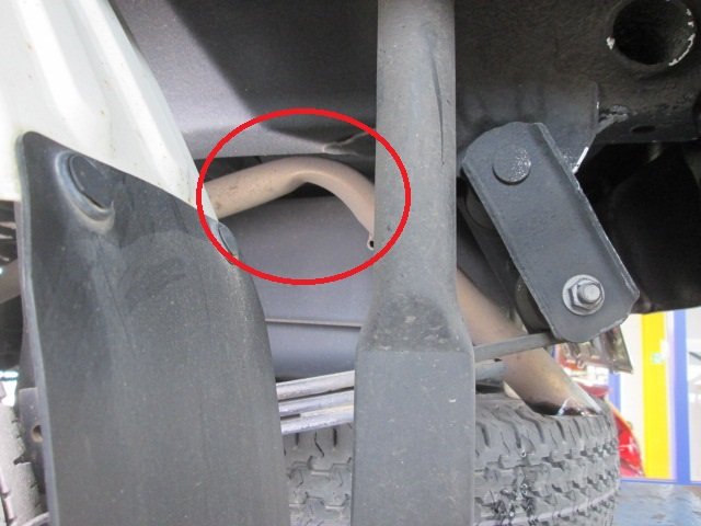 事故によりマフラーが曲がってしまった車両です。