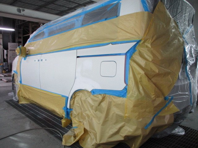 こちらのお車は、ドア下部に樹脂で出来たマッドガードがついておりました。前後で色の違いが出ると残念な仕上がりになるので、しっかり塗装して違和感の無い仕上がりになりました。