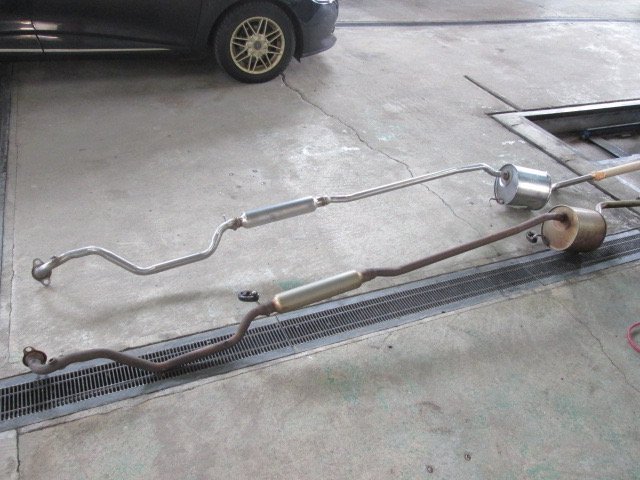 こちらの車両のマフラーは分割式ではなく1本ものでしたので大変でした。
