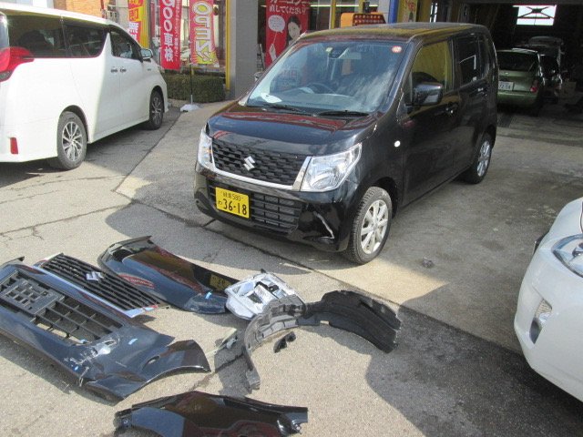 MH34S ワゴンR ヘッドランプ取替 フロントバンパー取替 フードパネル取替 フェンダーパネル取替 福井市