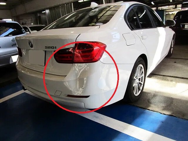 【三鷹市・武蔵野市・小金井市・府中市・調布市・杉並区・世田谷区】 BMW リアバンパー/テールランプ/トランクドア キズへこみ修理