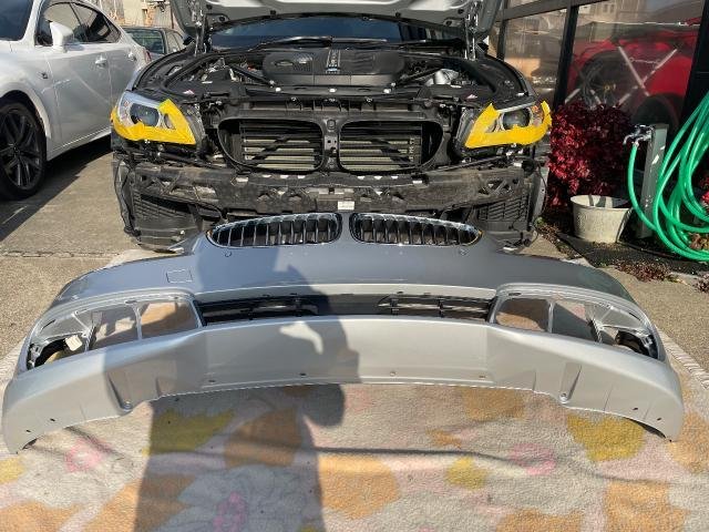 輸入車 BMW 523d F10 バンパー クリアー 剥がれ 色褪せ 割れ ヘコミ キズ 修理 交換 鈑金 塗装 事故 保険 高松 丸亀 坂出 善通寺 三豊 まんのう 香川