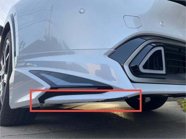 画像は右側ですが、左側にも同じようなキズがありますので修理していきます。修理後は、フロントバンパースポイラーにできたキズは、わからなくなりました!