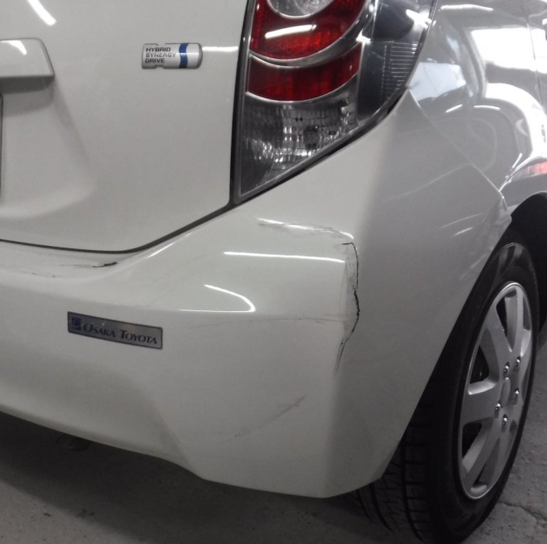 徳島県徳島市|アクア(トヨタ)のキズ・へこみ直し事例(リアバンパー)