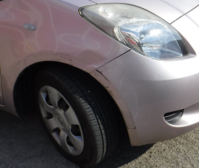 徳島県徳島市|ヴィッツ(トヨタ)のキズ・へこみ直し事例(フロントバンパー、フェンダー)