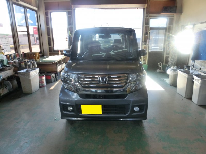 栃木県真岡市|N-BOX(ホンダ)のキズ・へこみ直し事例(フロントガラス 飛び石 交換)