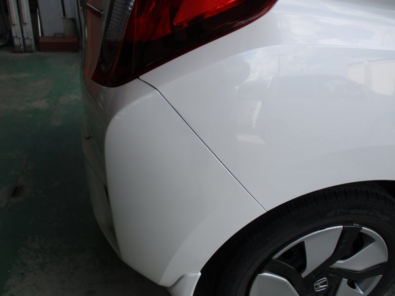 栃木県真岡市|フィット(ホンダ)のキズ・へこみ直し事例(Rバンパースリキズ 内部修正 Rマットガード )