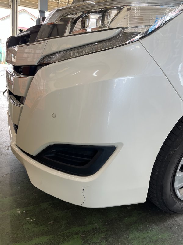 フロントバンパースリキズ修理のご相談でしたが、割れもあったので交換をおすすめしました。キレイになってスッキリしました。ありがとうございました。