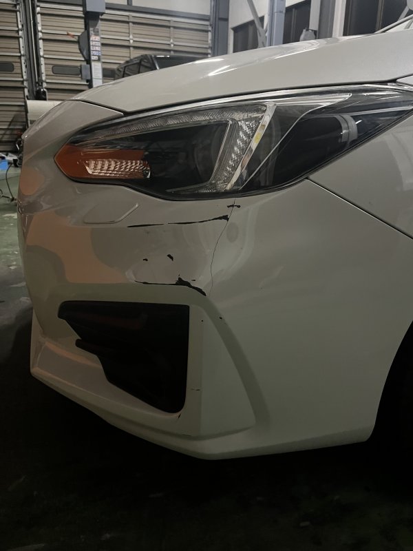 社外品スポイラーの擦り傷、割れ修理のご依頼です。社外品の為ディーラーさんで断られたとの事で相談をうけました。割れ修理、キズ塗装をして取付して完成。お客様も喜んで頂きました。ありがとうございました。