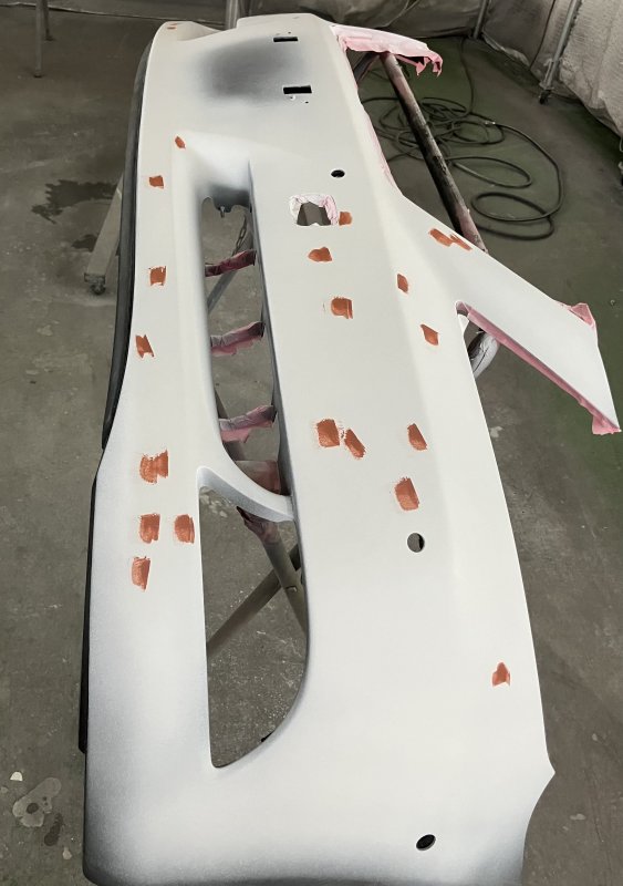 バンパーを外してよく見ると、確かにかなり沢山飛び石キズがあり注意して修理しました!