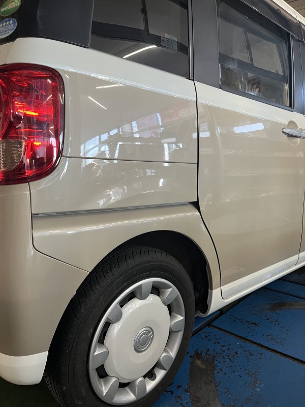 米沢市 ダイハツ ムーブキャンバス クウォーターパネル ヘコミキズ 修理塗装