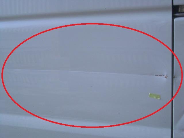 左後ろスライドドアから後方にかけて、引っ掻いた様な形になっていました。
