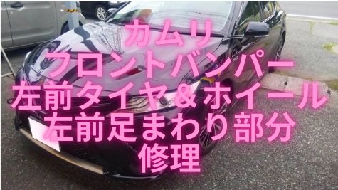 【大多喜町・勝浦市・いすみ市・睦沢町・御宿町・市原市・茂原市・長南町】 カムリ フロントバンパー/左前タイヤ&ホイール/左前足まわり部分 キズへこみ修理