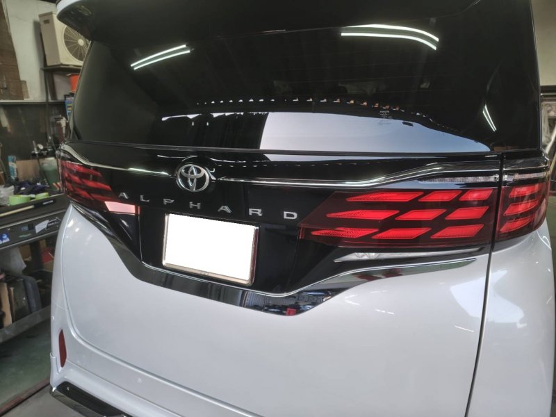 【小美玉市】トヨタ・アルファードの修理事例|リヤゲートガーニッシュ交換で愛車の輝きを短期間でキープ!