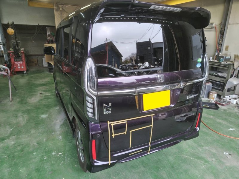 「【ホンダ N-BOX】リヤゲート・リヤバンパー鈑金修理事例|カーコンビニ倶楽部 スーパーショップK.N.S」 2025/10/31 - キズ・へこみ直し