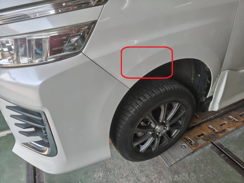 「【トヨタ ヴォクシー】フロントフェンダーのキズ・ヘコミ鈑金修理事例|カーコンビニ倶楽部 スーパーショップK.N.S」