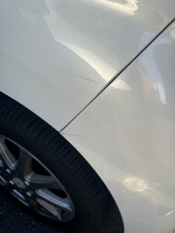 後退時に運転席側のバンパーやフェンダー部分を擦ってしまい、傷ができたため、修理のお問い合わせで来店いただきました。しっかりと傷の
