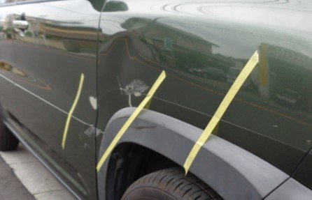 損傷個所はフロントフェンダーからフロンドドアまでにかけてでした。