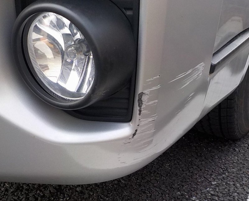 写真でも見てわかる通り、フロントバンパーに傷が入っているのがわかります...