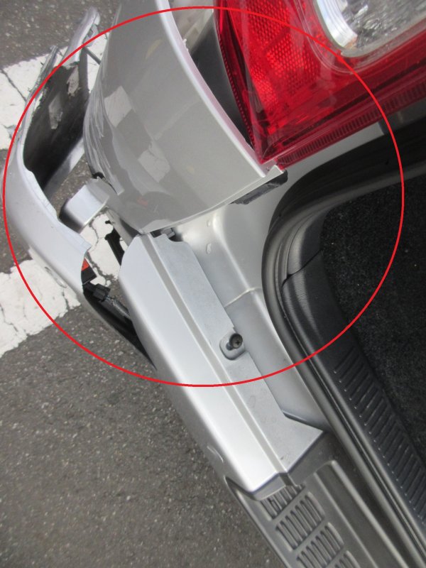 お車を確認させて頂くと、左クォーター・左テールランプ・左後ろコーナーカバー・リアバンパーに大きな破損が確認出来ました。